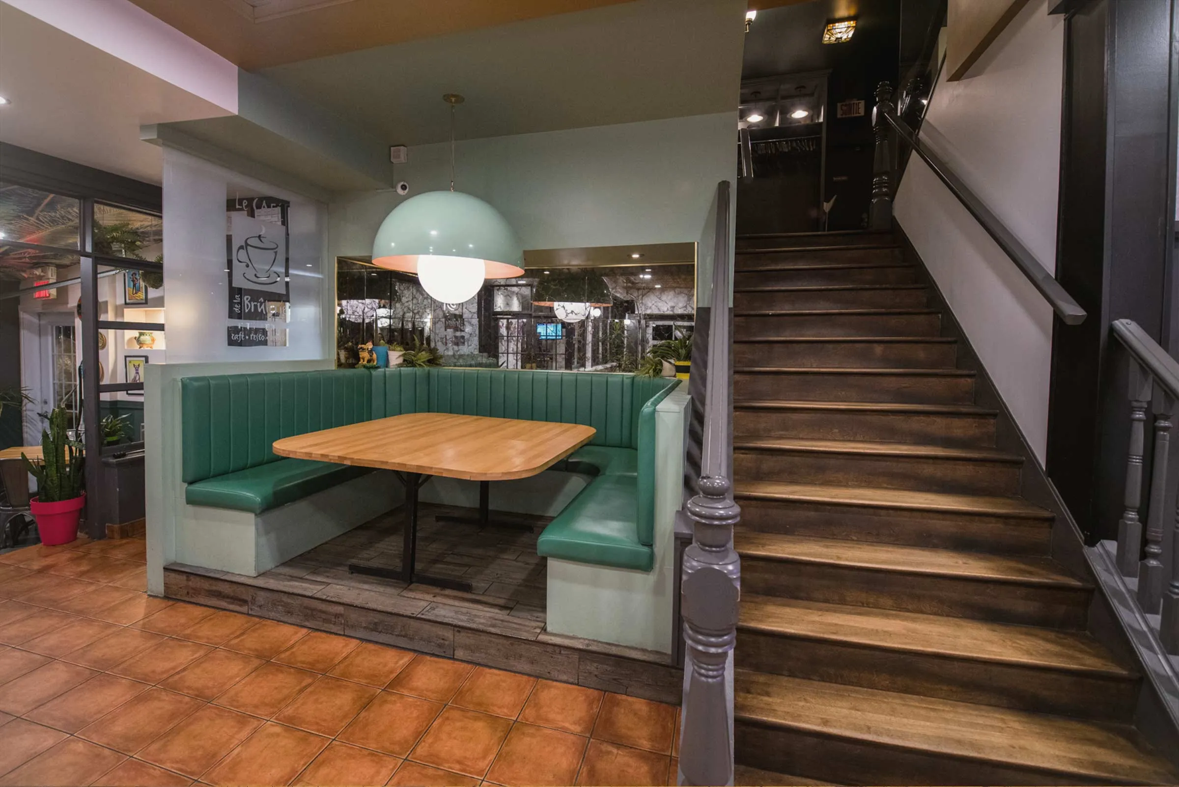 L’étage a été pensé pour accueillir aussi bien des groupes que des clients seuls, avec des zones modulables et une disposition flexible permettant de conserver l’esprit du restaurant tout en optimisant la capacité d’accueil. Des détails chers à la propriétaire, comme une mosaïque réalisée par des étudiants, ont été intégrés pour garder une forte dimension affective et authentique.