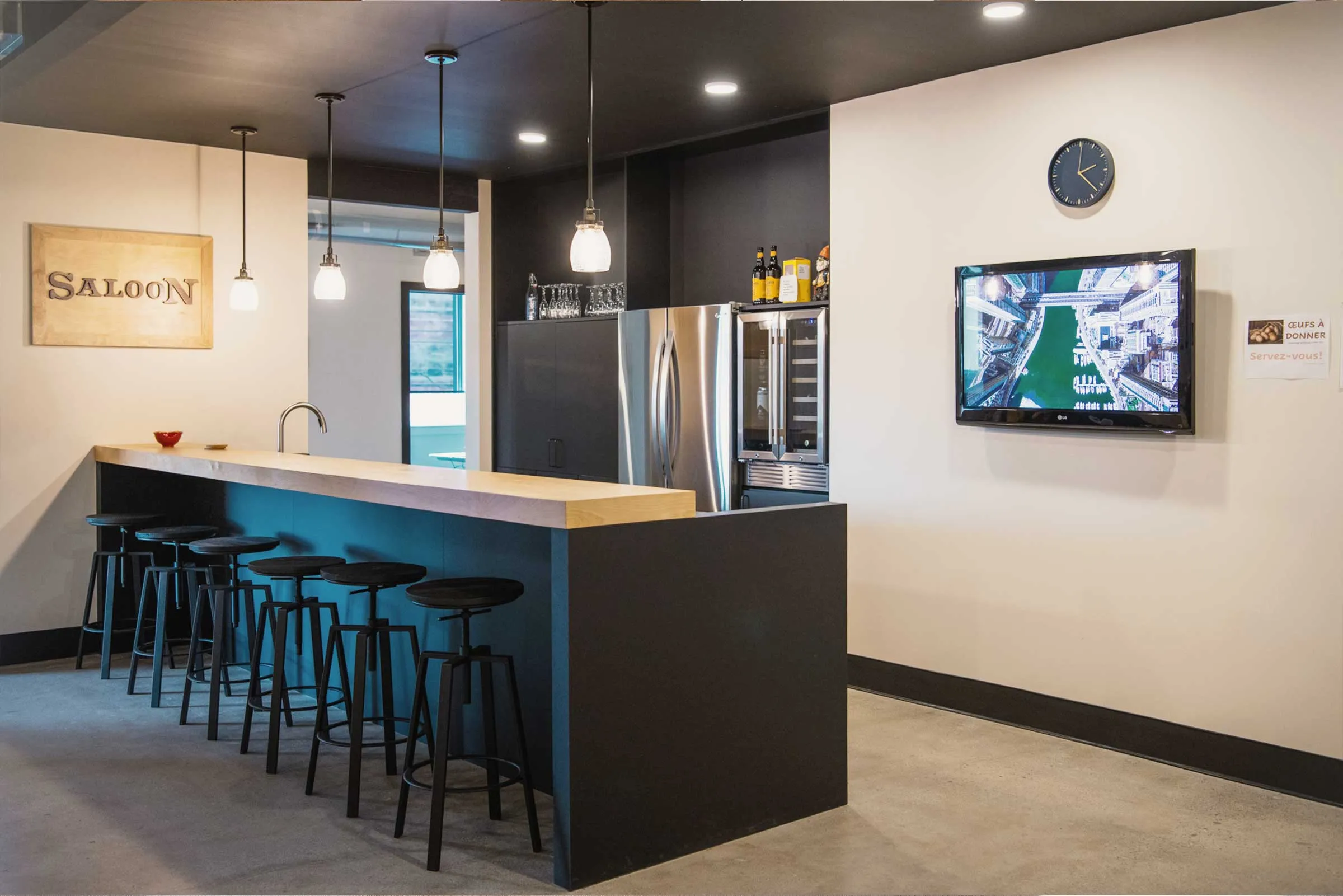 Au final, l’équipe a réussi à créer un environnement inspirant et chaleureux, où l’on a tout de suite envie de partager un moment, de travailler ou même de prolonger la journée autour d’un 5 à 7.