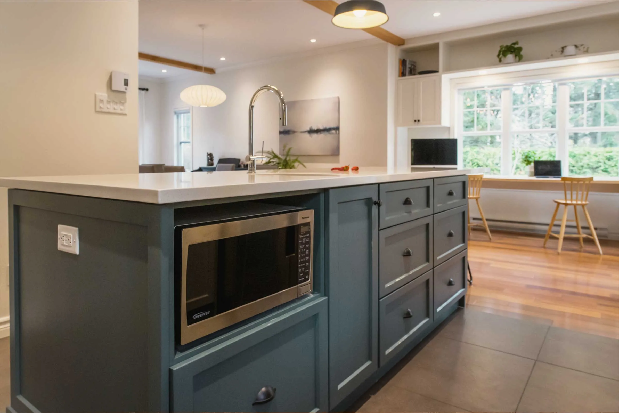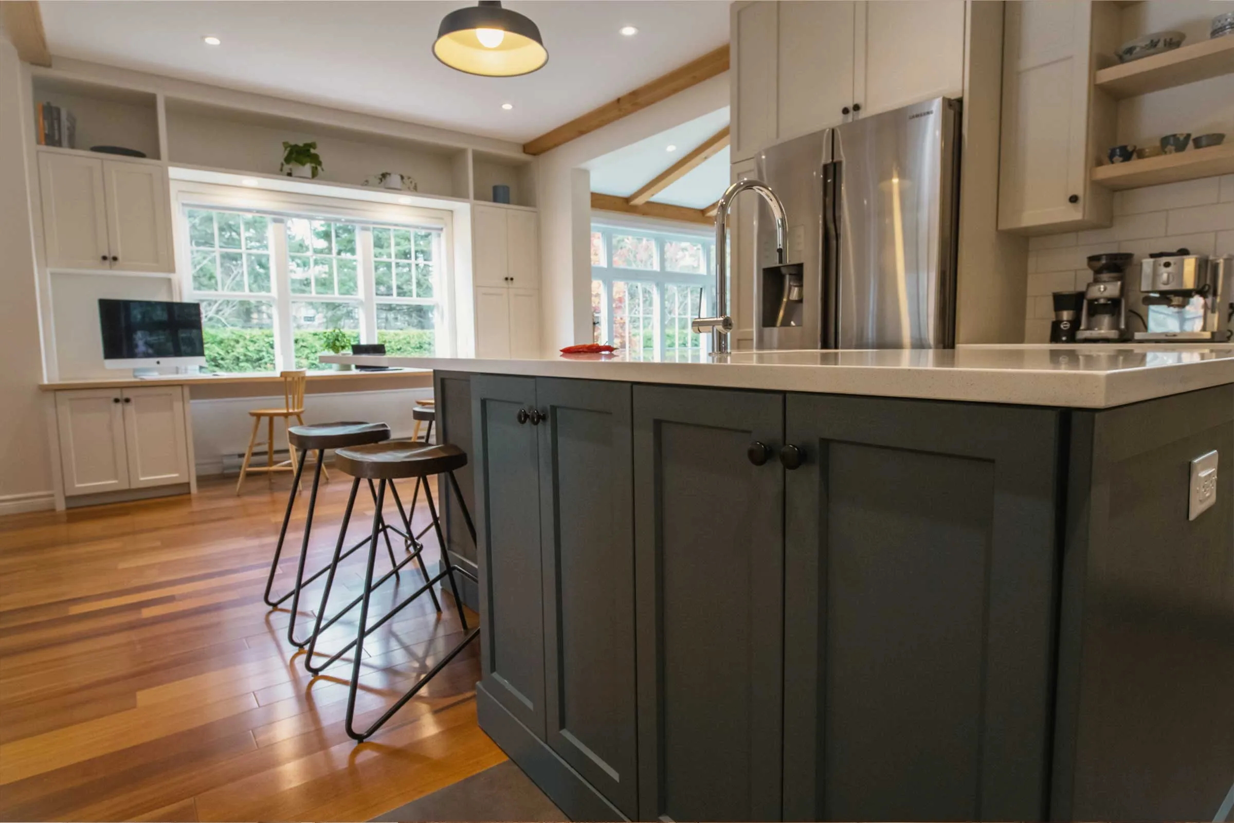 Pour cette jeune famille dynamique, Marron Design a accompagné un projet de rénovation et d’agrandissement de 900 pi² couvrant tout le rez-de-chaussée : entrée, séjour, cuisine, salle à manger, espace bureau, salle d’eau et solarium. L’objectif : offrir des espaces fonctionnels et chaleureux, adaptés à un mode de vie familial actif et convivial.