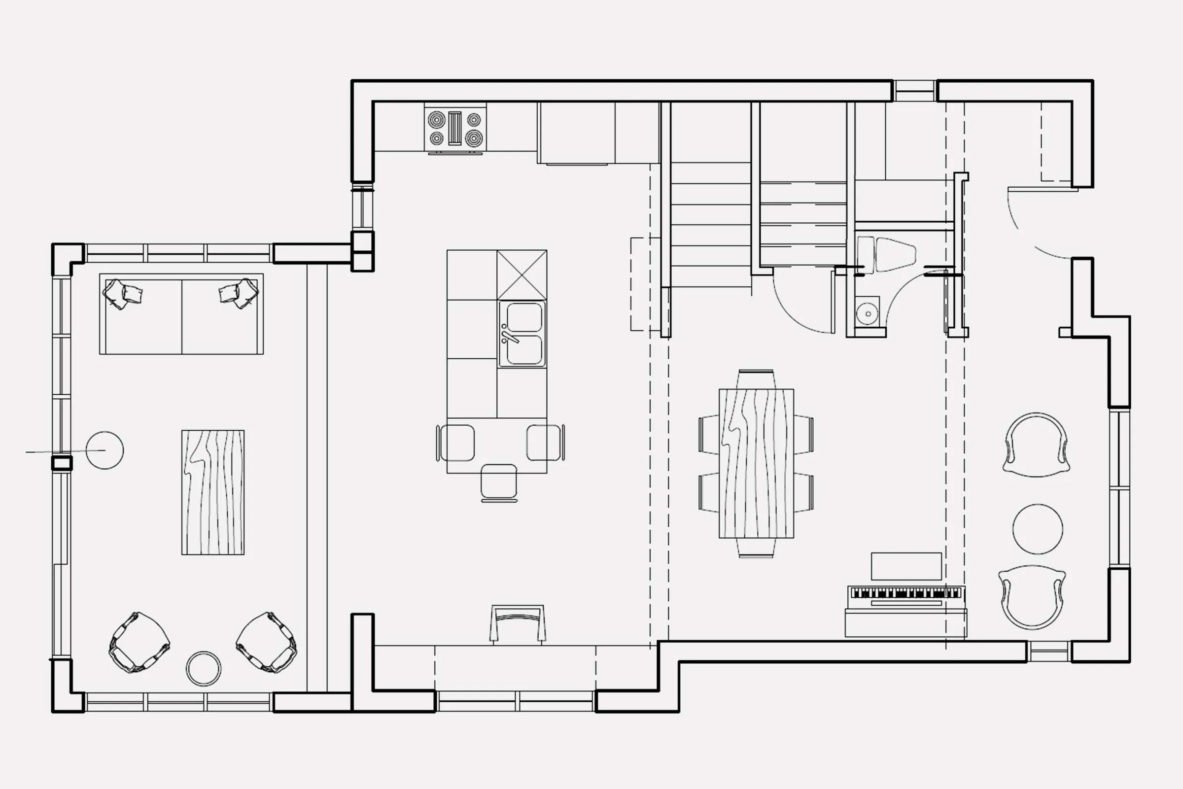 La cuisine, peu pratique auparavant, a été repensée pour encourager les moments de partage et de créativité culinaire. Une nouvelle pièce a également été intégrée à l’entrée afin de créer une zone d’accueil plus spacieuse et connectée à la nature environnante. Le choix des matériaux et des aménagements a été réfléchi pour accompagner l’évolution de la famille au fil des années, en respectant l’identité des occupants et leurs habitudes de vie.